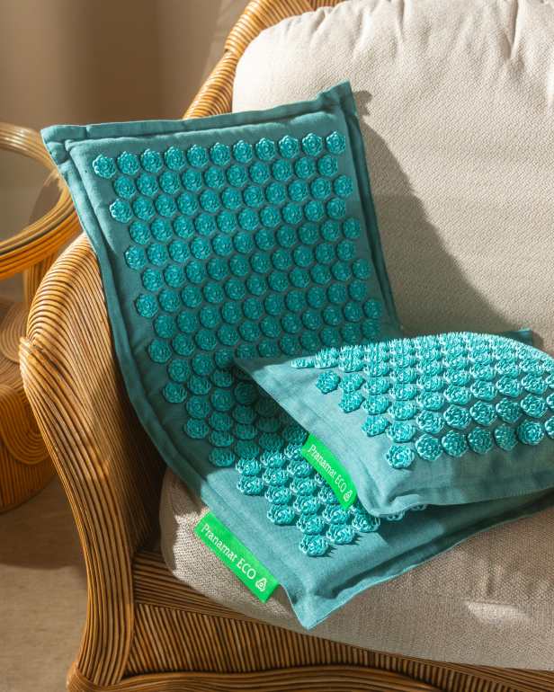 Full-body massage from head-to-toe. The beautiful, lotus-emblazoned Pranamat Pillow shape-shifts to kiss the nape of your neck and shoulders. The Pranamat Mat creates a flood of warmth and comfort down your spine. Sink the soles of your feet into the Pranamat Mini for an unforgettable sensation.
